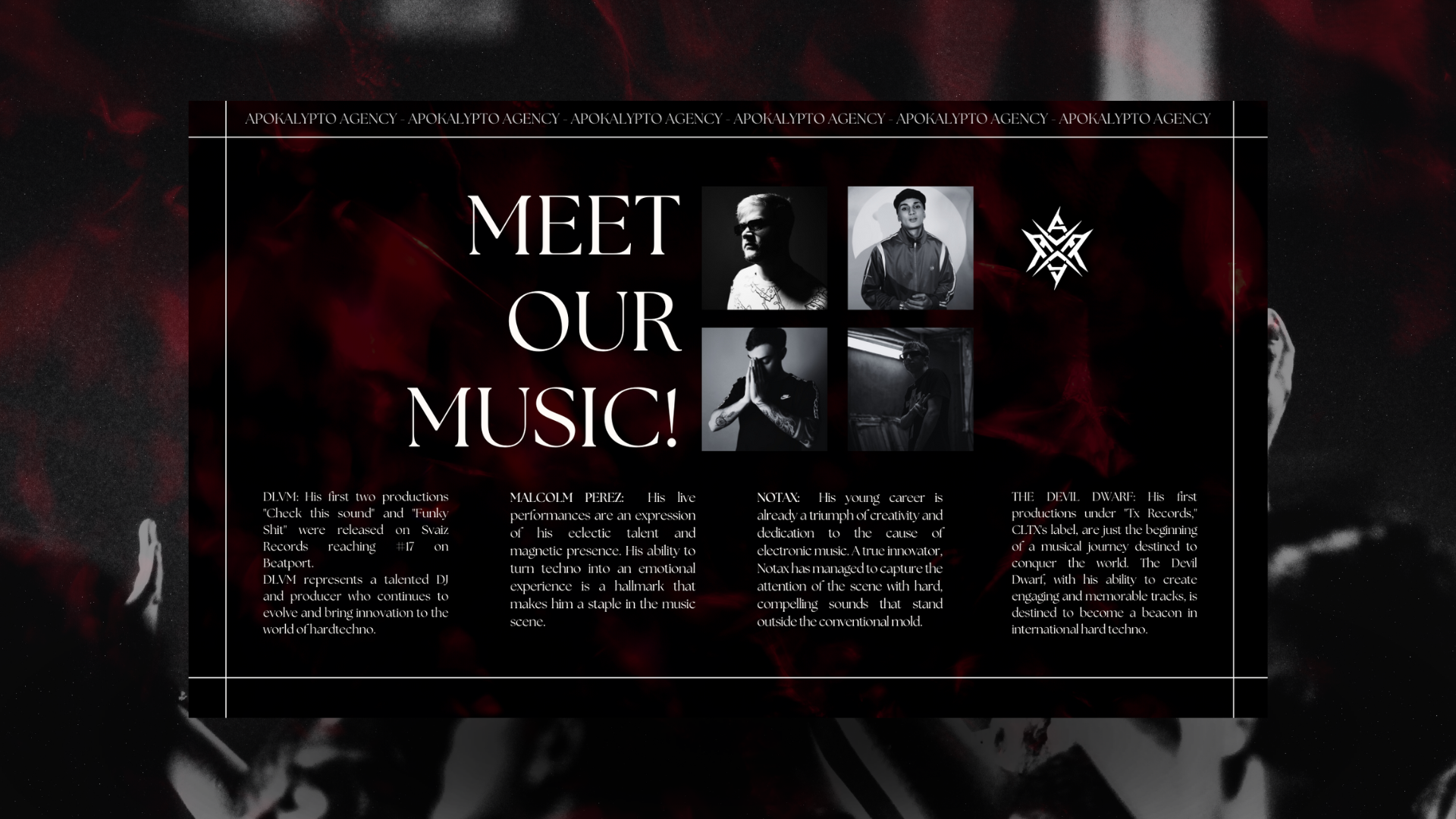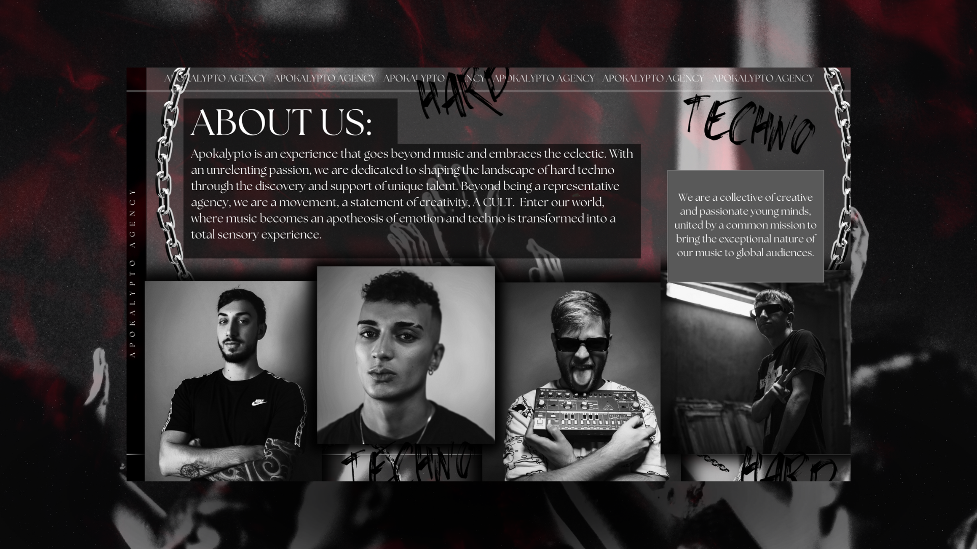 Apokalypto is an experience that goes beyond music and embraces the eclectic. With an unrelenting passion, we are dedicated to shaping the landscape of hard techno through the discovery and support of unique talent. Beyond being a representative agency, we are a movement, a statement of creativity, a community, a "CULT".